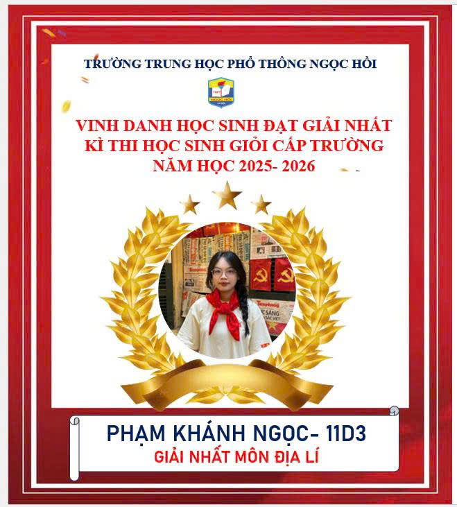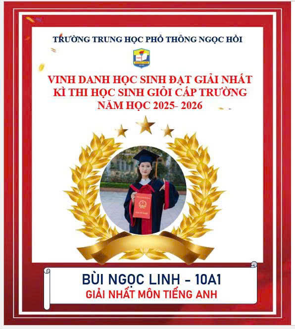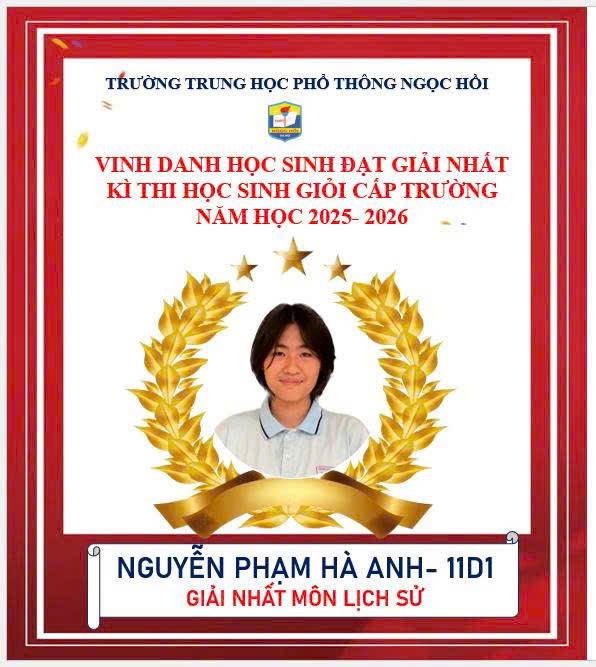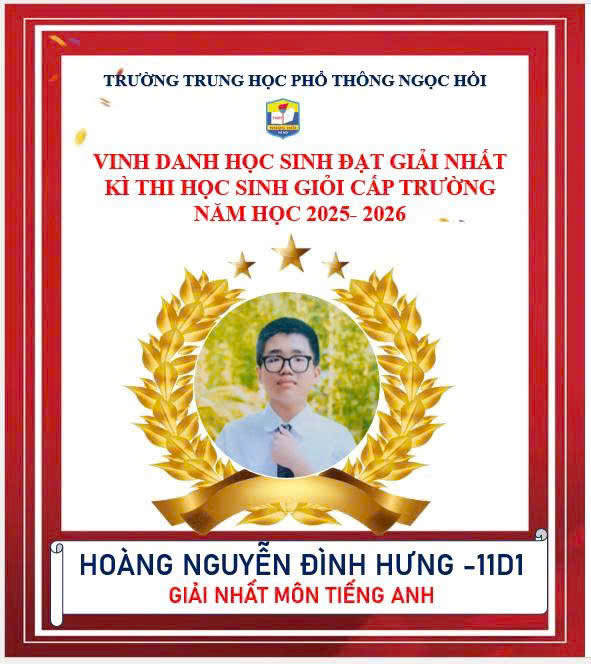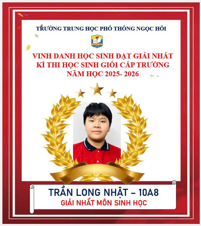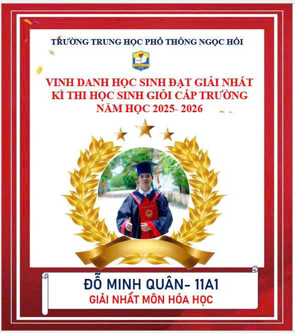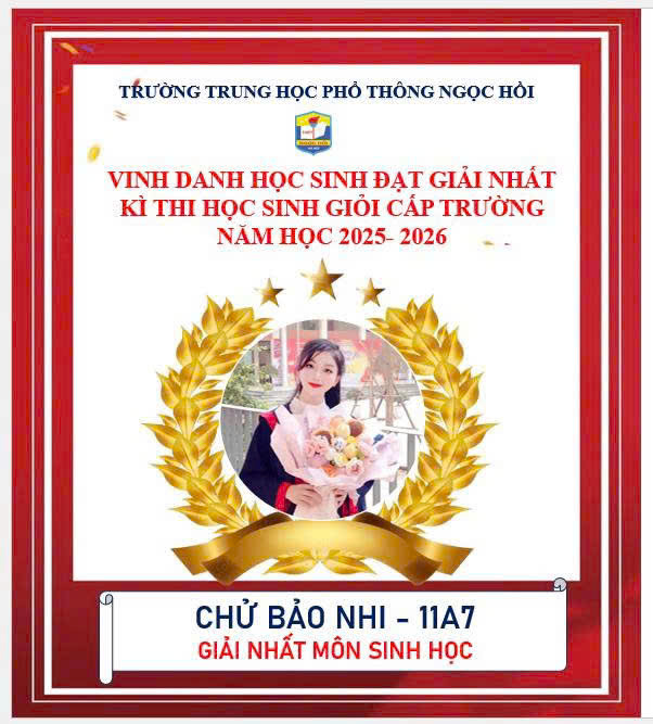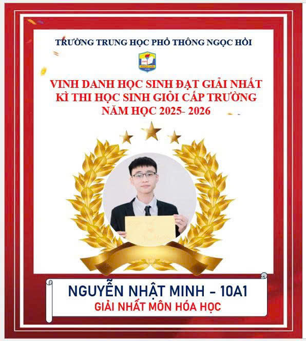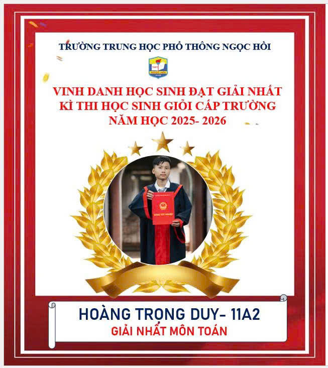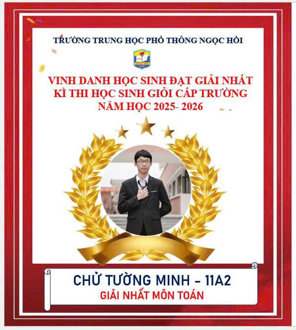 Trường THPT Ngọc Hồi xin chúc mừng các em học sinh khối 10 và 11 đã xuất sắc giành giải Nhất trong kỳ thi Học sinh giỏi cấp trường năm học 2025–2026